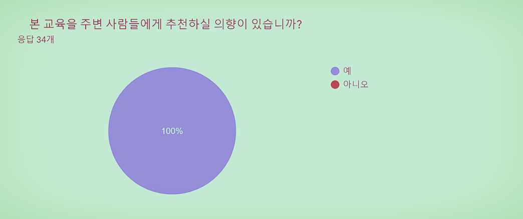 주변 사람들에게 추천할 의사가 있는 만큼 특강에 대한 만족도가 너무 좋았습니다!