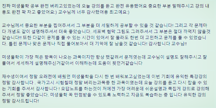 구강미생물학에 대한 자신감을 쑥쑥!! 높여주었다는 후기를 많이 남겨주셨습니다 :)