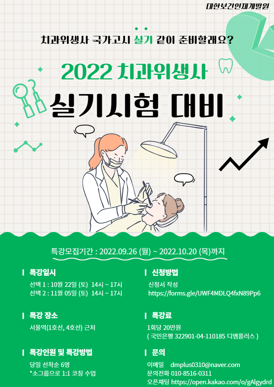 | 치과보험청구사 3급-광주 3days 특강 (0) | 2022.03.28 |